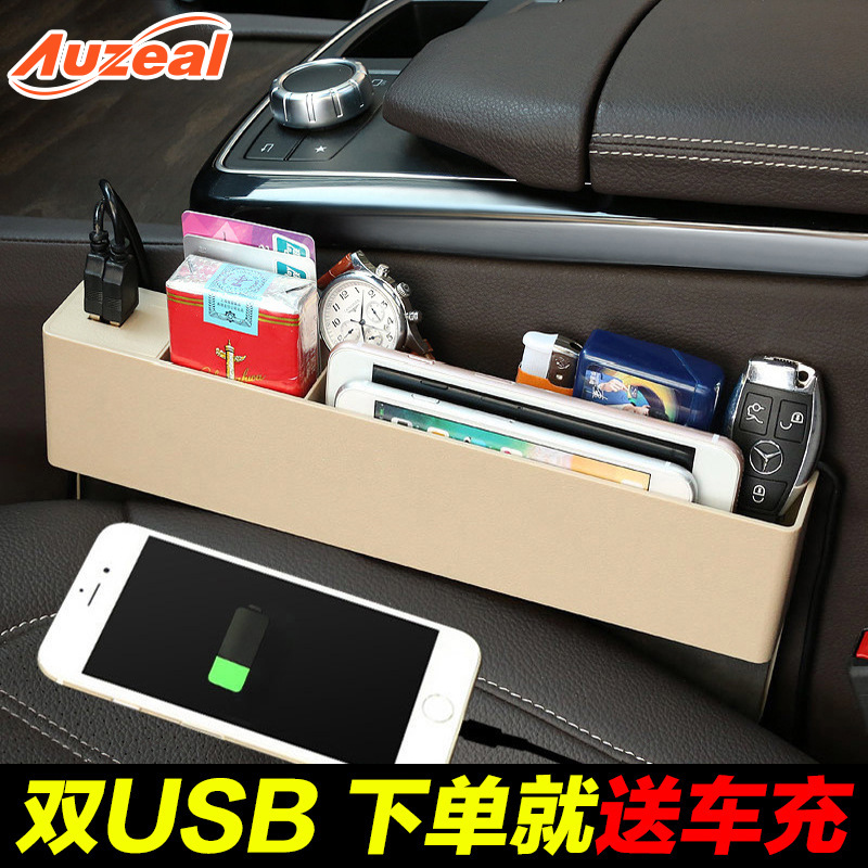 高档带车载usb充电器汽车收纳盒座椅夹缝盒车用储物盒缝隙置物盒车内饰品汽车用品